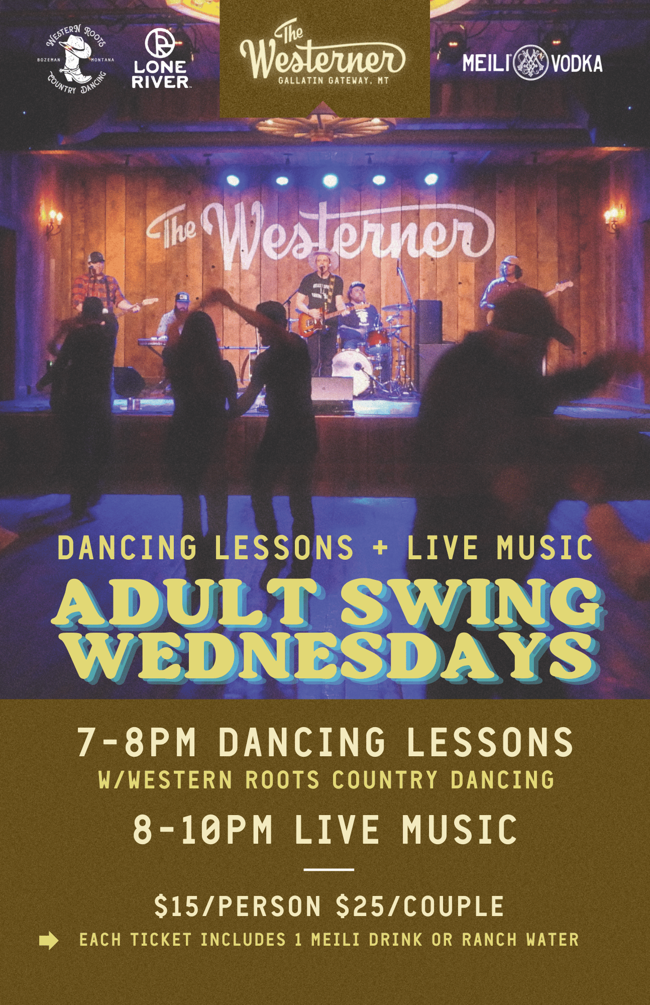 EACH TICKET INCLUDES 1 MEILI DRINK OR RANCH WATER.